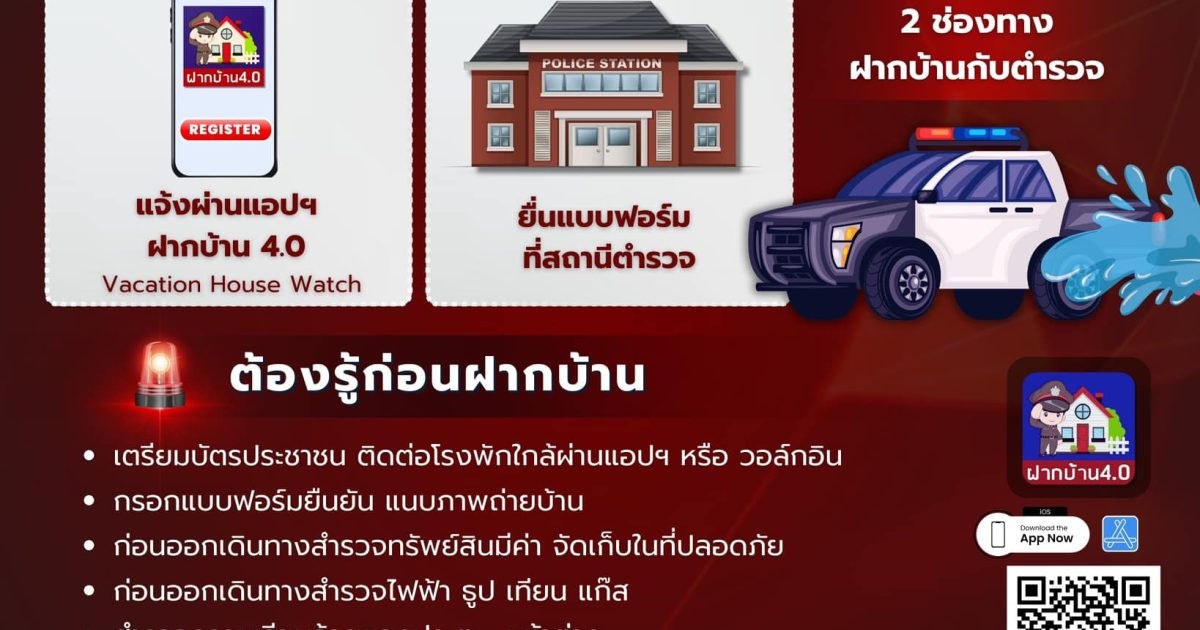 สงกรานต์ 2568 💦 ฝากบ้านไว้กับตำรวจ 👮♀️ เริ่ม 11 – 20 เมษายน 2668
