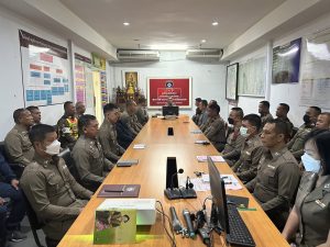 *ว่าที่ พันตำรวจเอกอชิรวัตติ์ ถาวรเจริญวัฒน์ ผู้กำกับการสถานีตำรวจภูธรสามร้อยยอด เป็นประธานการประชุม