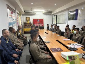 *ว่าที่ พันตำรวจเอกอชิรวัตติ์ ถาวรเจริญวัฒน์ ผู้กำกับการสถานีตำรวจภูธรสามร้อยยอด เป็นประธานการประชุม