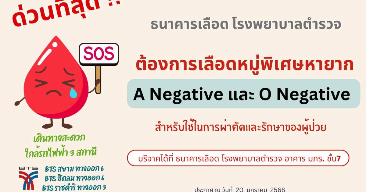 ธนาคารเลือด รพ.ตำรวจ มีความจำเป็นเร่งด่วน