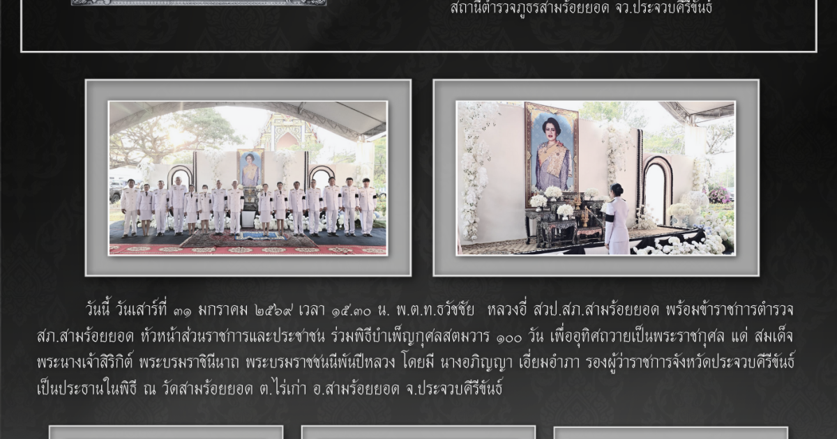 ข้าราชการตำรวจ สภ.สามร้อยยอด ร่วมพิธีบำเพ็ญกุศลสตมวาร 100 วัน เพื่ออุทิศถวายเป็นพระราชกุศล แด่สมเด็จพระนางเจ้าสิริกิติ์ พระบรมราชินีนาถ พระบรมราชชนนีพันปีหลวง