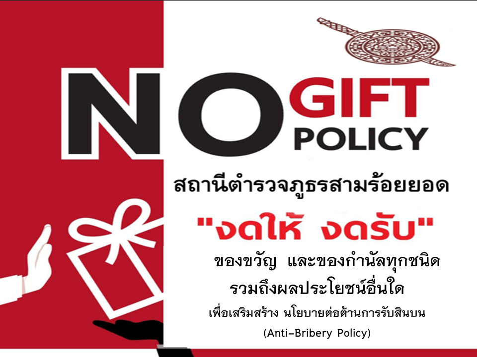 เรื่อง เจตนารมณ์ที่จะไม่รับของขวัญหรือของกำนัลทุกชนิดจากการปฏิบัติหน้าที่ (No Gift Policy)