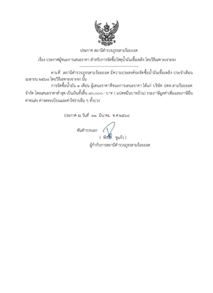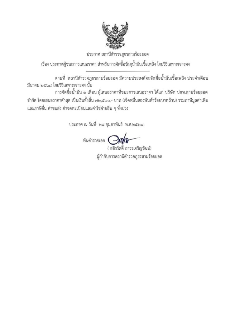 ประกาศต่างๆ เกี่ยวกับการจัดซื้อจัดจ้าง ของสถานีตำรวจ